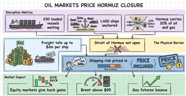 Oil markets price Strait of Hormuz closure at Brent above $99
