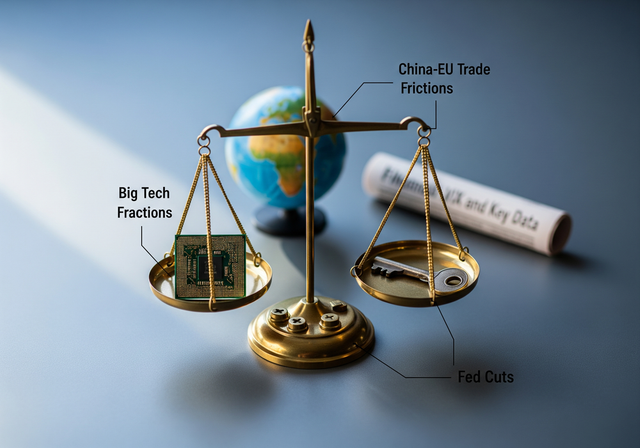 Tech-led gains and low volatility meet shifting Fed cut odds, China-EU trade frictions, and key data.