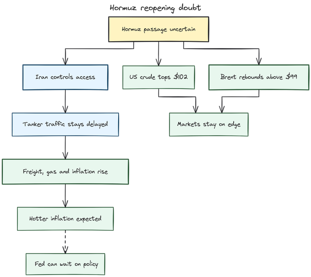 Brent rebounded above $99 a barrel as traders questioned whether the Strait of Hormuz will reopen after the ceasefire.