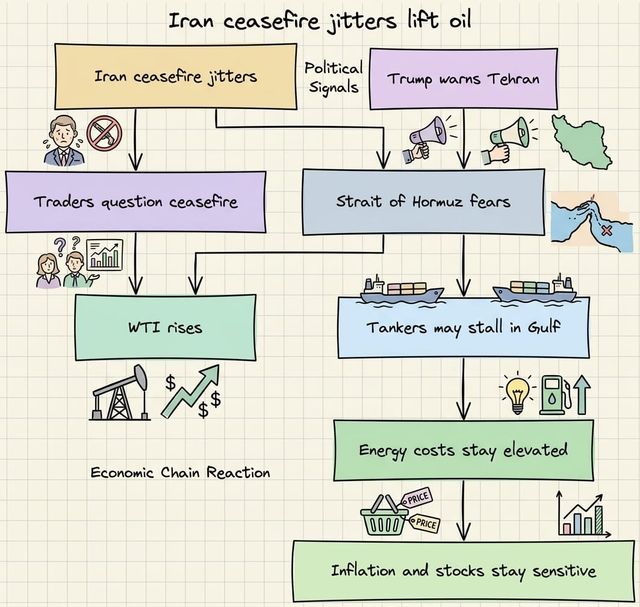 President Donald Trump warned Tehran over any fees on vessels in the Strait of Hormuz as West Texas Intermediate climbed and traders questioned whether the ceasefire will hold.